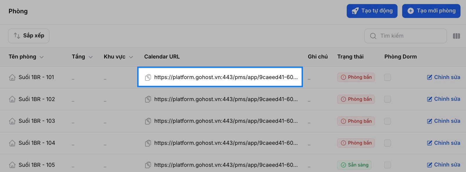 Bước 3: Copy link ical của từng phòng & gán lên các kênh bạn có nhu cầu