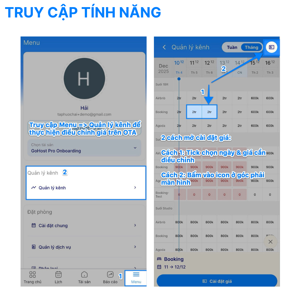 Từ 10.12.2025, GoHost ra mắt phiên bản ứng dụng mới, cho phép người dùng điều chỉnh giá trực tiếp trên ứng dụng. Hãy làm theo hướng dẫn dưới đây để sử dụng: