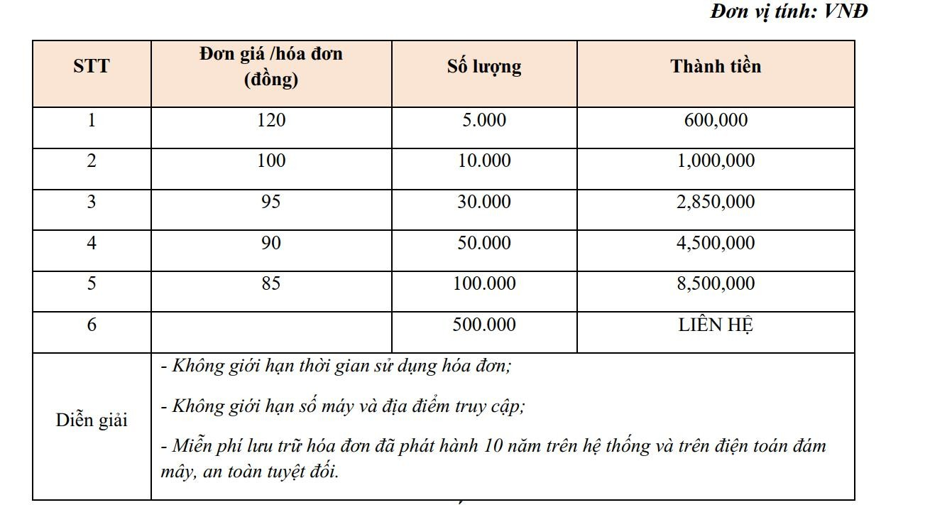 Từ 5.000 hoá đơn trở lên: miễn phí khởi tạo