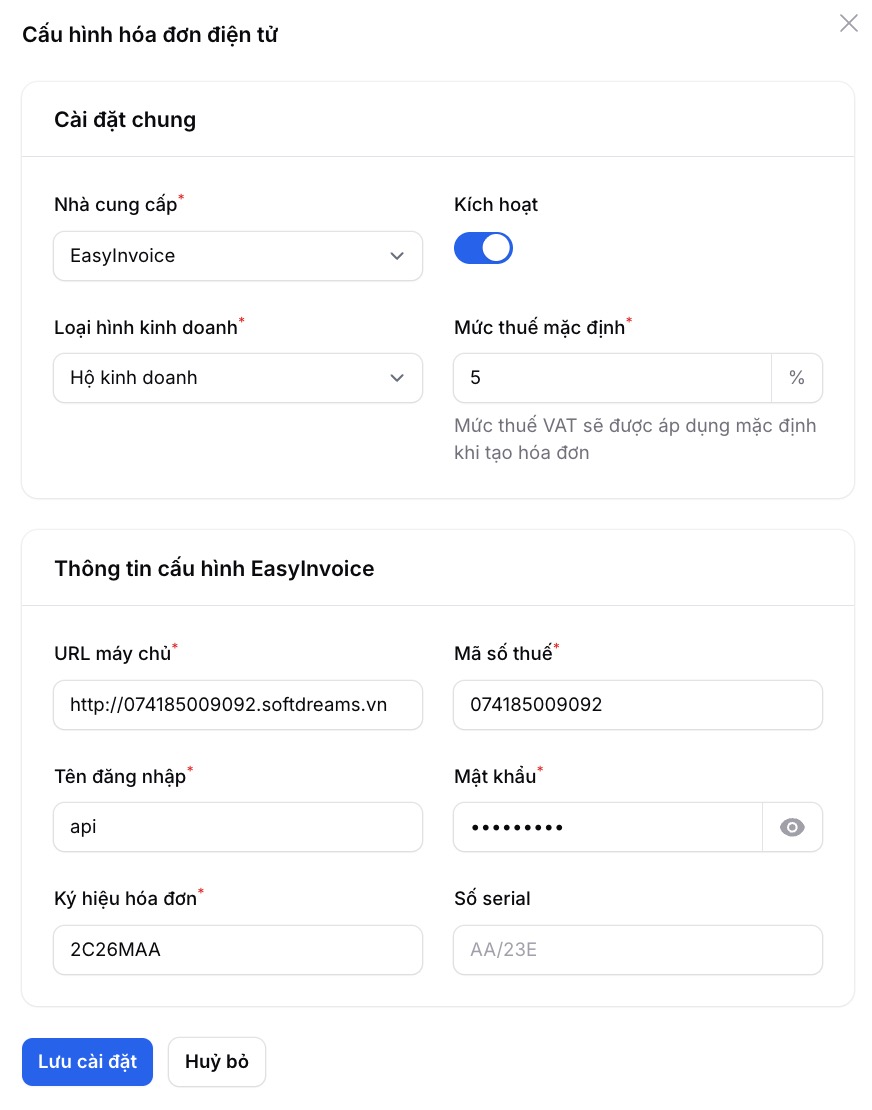 Xem bài 1 về khởi tạo tài khoản Easy Invoice tại đây