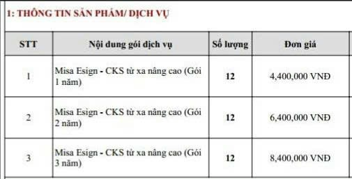 Chữ ký số nâng cao có chi phí cao hơn so với gói cơ bản thường dùng. Bạn có thể tham khảo bảng giá niêm yết dưới đây. Chính sách ưu đãi cụ thể, vui lòng liên hệ đội ngũ Misa