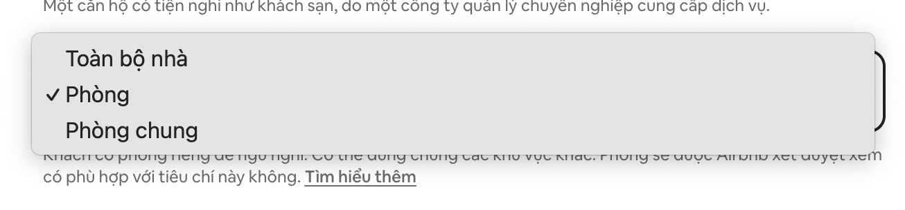Có 3 loại tài sản hỗ trợ bạn bán nhiều đơn vị phòng (Room unit) trên Airbnb bao gồm: