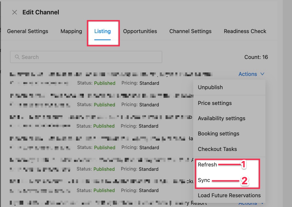 Trường hợp bạn điều chỉnh lại cấu hình Airbnb sau khi kết nối, bạn cần thực hiện các thao tác sau để hệ thống tái đồng bộ theo cài đặt mới của bạn: